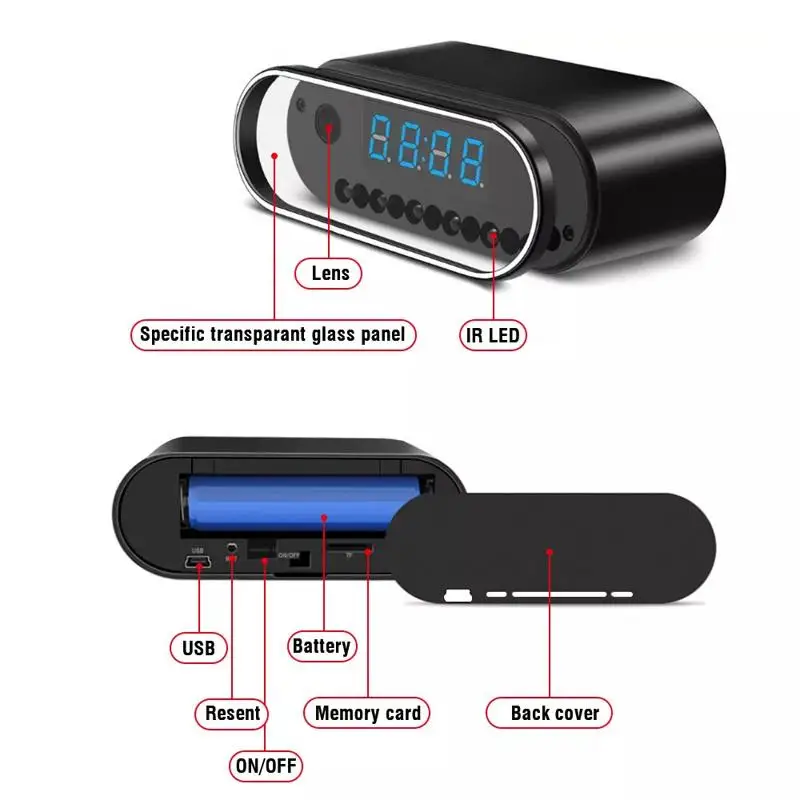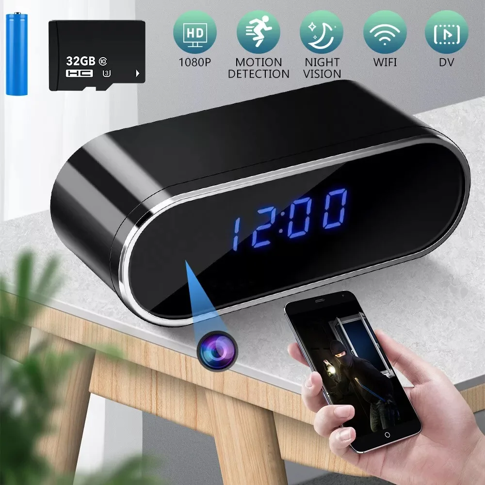 1080P Full HD Mini Clock Camera, Home Security Monitoring, Supports Wireless WiFi, Motion Detection, Loop Recording